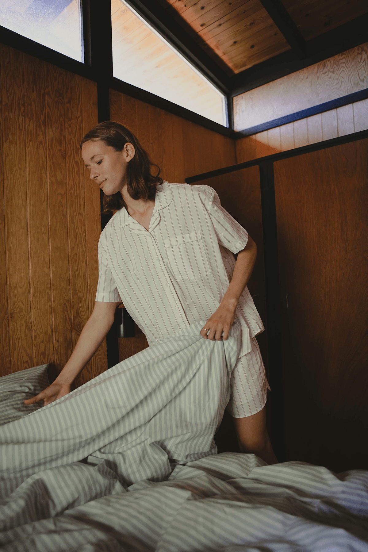 A summer version of our popular Edith pyjamas with short sleeves and shorts.