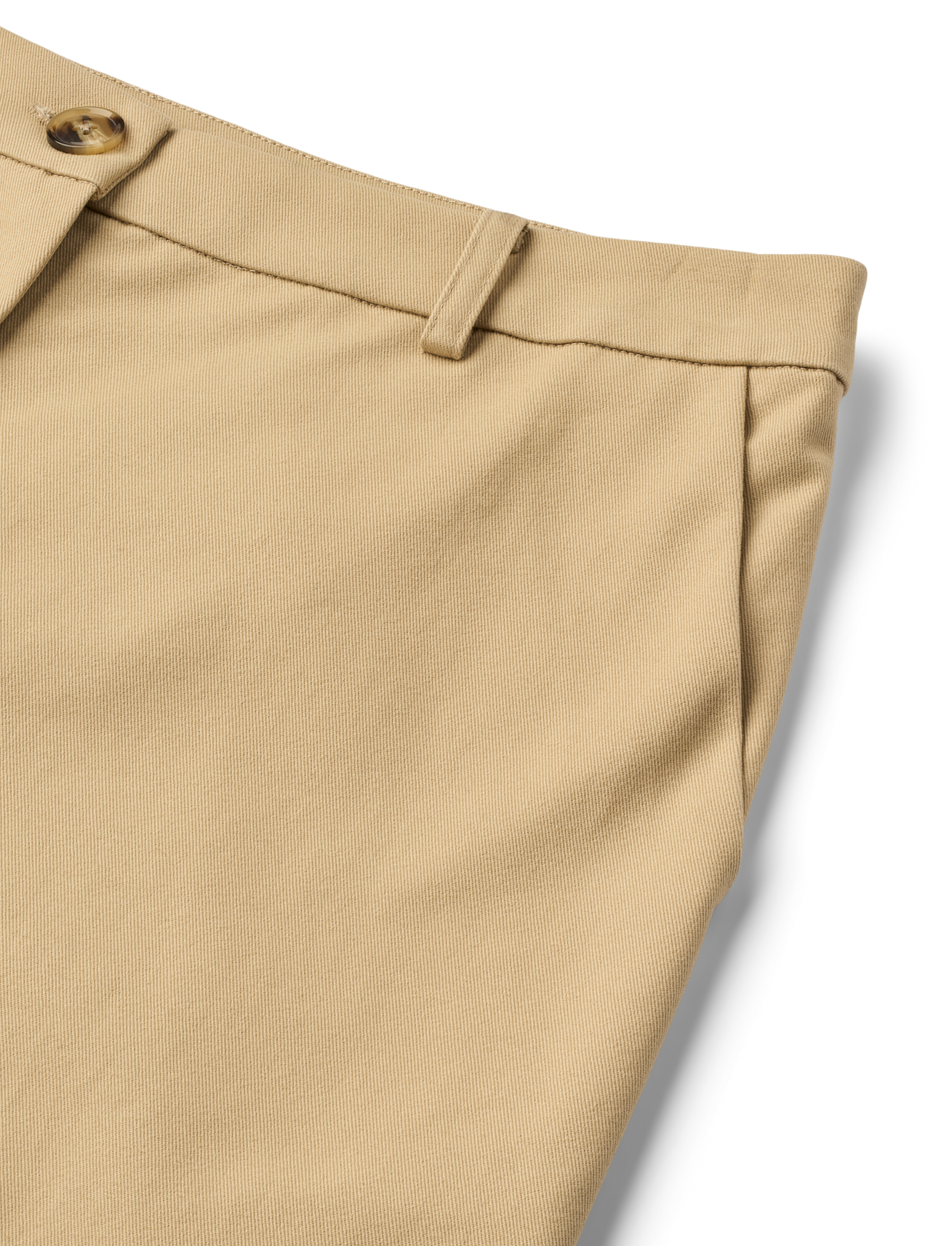 A classic style with a fixed waistband, slanted pockets, belt loops and a single button closure.