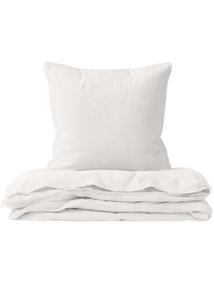Gots certified organic bedding in stonewashed cotton percale. Soft bedding with a washing that gives a very beautiful understated look and handfeel. Pillow case 40x45cm and duvet cover 70x100cm has an invisible zipper as closure at the bottom. The bedding is delivered in a matching fabric bag with tie strings and French seams inside.