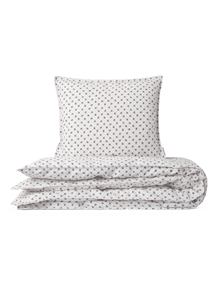 GOTS certified organic bedding in washed cotton percale for a very beautiful understated look and handfeel. Pillow case 40x45 cm with envelope closure and extra long duvet cover 70x100 cm with buttons. The bedding is delivered in a matching fabric bag with tie strings and French seams inside.