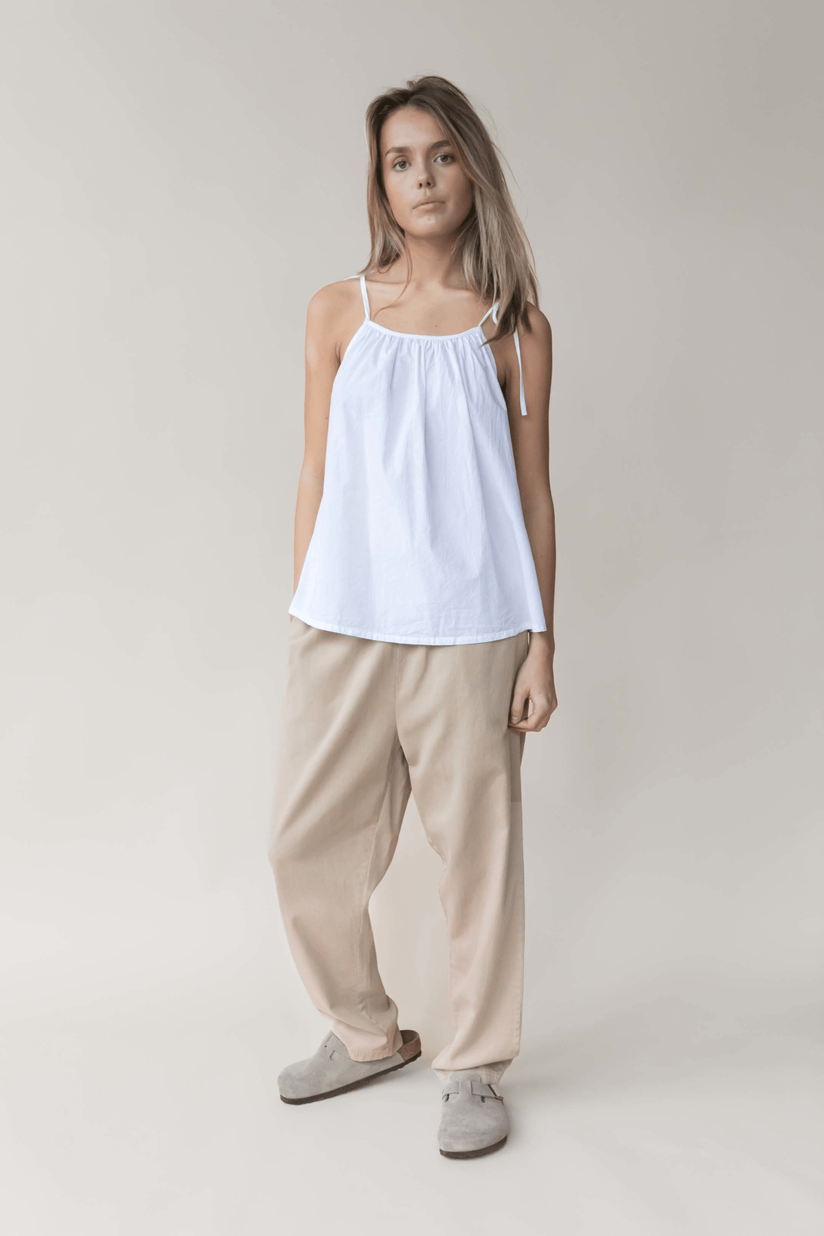 Beautiful pants with straight legs in organic cotton. The pants has straigt legs with a sligtly narrowed ankle, wide elastic waistband and pockets, both front and back. All interior stitching is French seamed to get a delicate and luxurious finish.The Carla pants can be styled with our knits, Freya t-shirt or one of our casual shirts - either in the same color or a contrasting color - if you want a slightly more formal but still casual look
