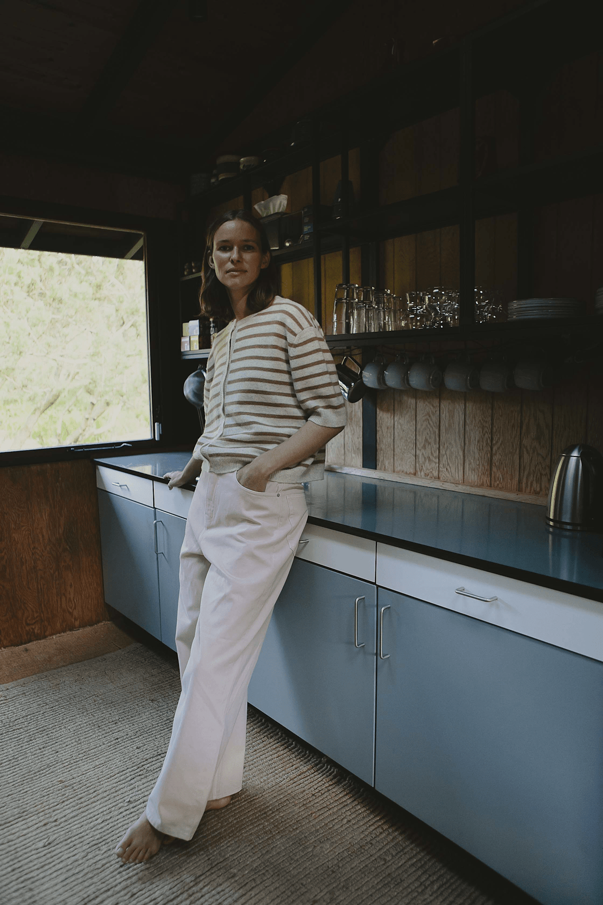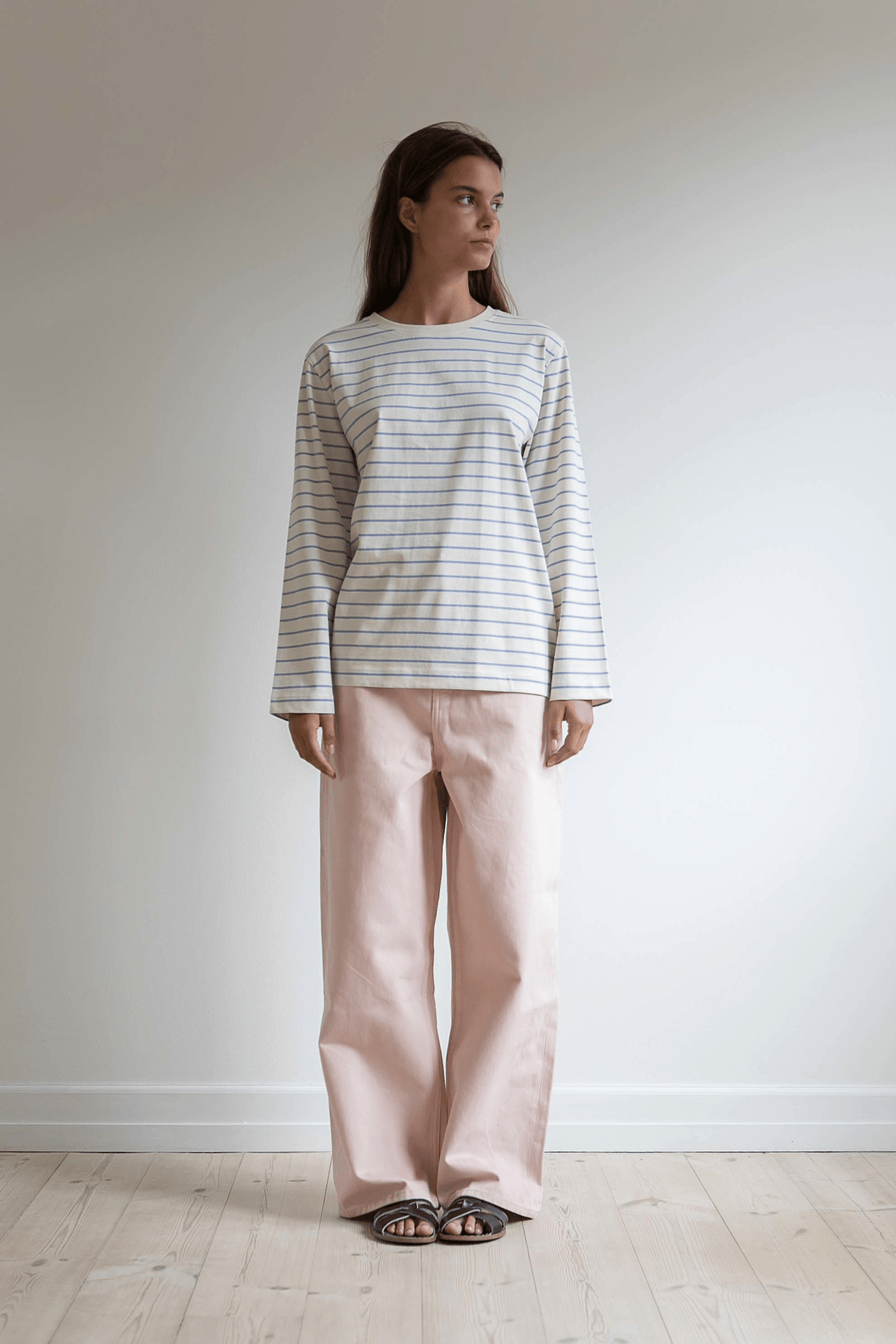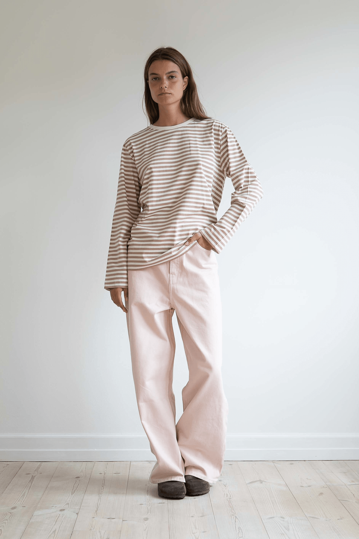 Evelyn jeans feature a relaxed, oversized fit with wide legs and an effortless look. Classic details such as front pockets, back pockets and belt loops give a timeless design with a modern touch. Made from GOTS-certified, 100% organic cotton and produced in Turkey in high quality. Denim is a completely new category in the collection, introduced with a focus on quality, fit and timeless design.