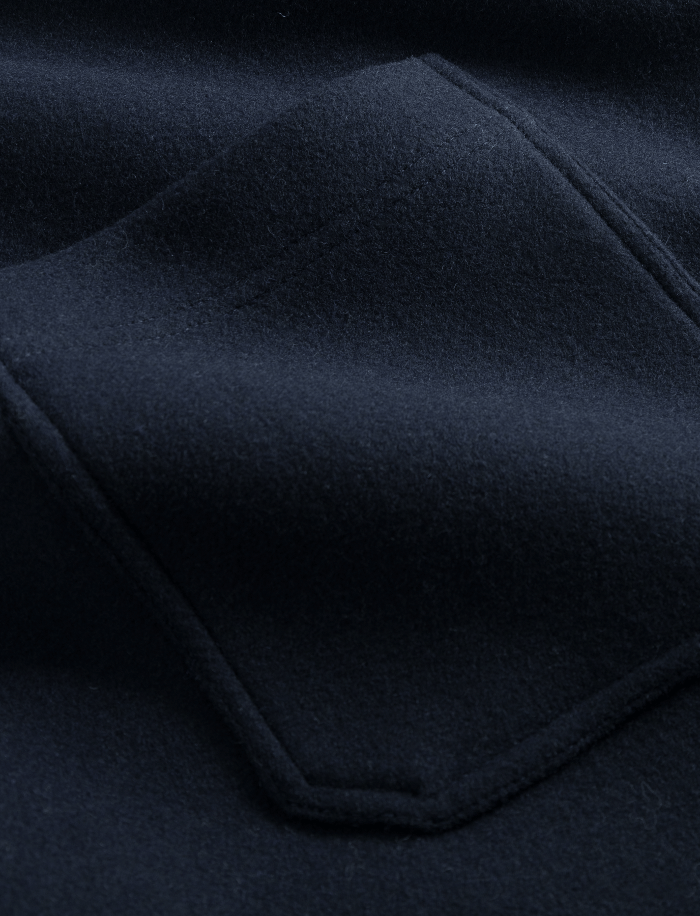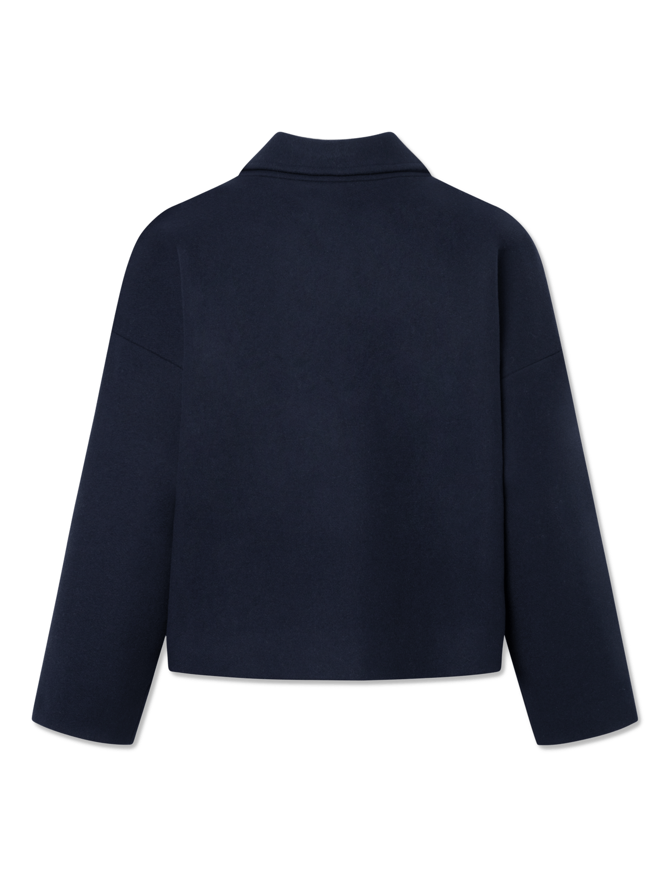 A further development of our popular Felina Jacket. Short, stylish classic jacket in a strong yet soft 100% pure RWS wool quality. A further development of our popular Felina Jacket. The jacket has a cotton lining inside with discreet stylish stripes. The jacket has a boxy oversized fit with front pockets and horn buttons. The jacket is perfect for those who want a short winter jacket that is warm and dense in the weave.