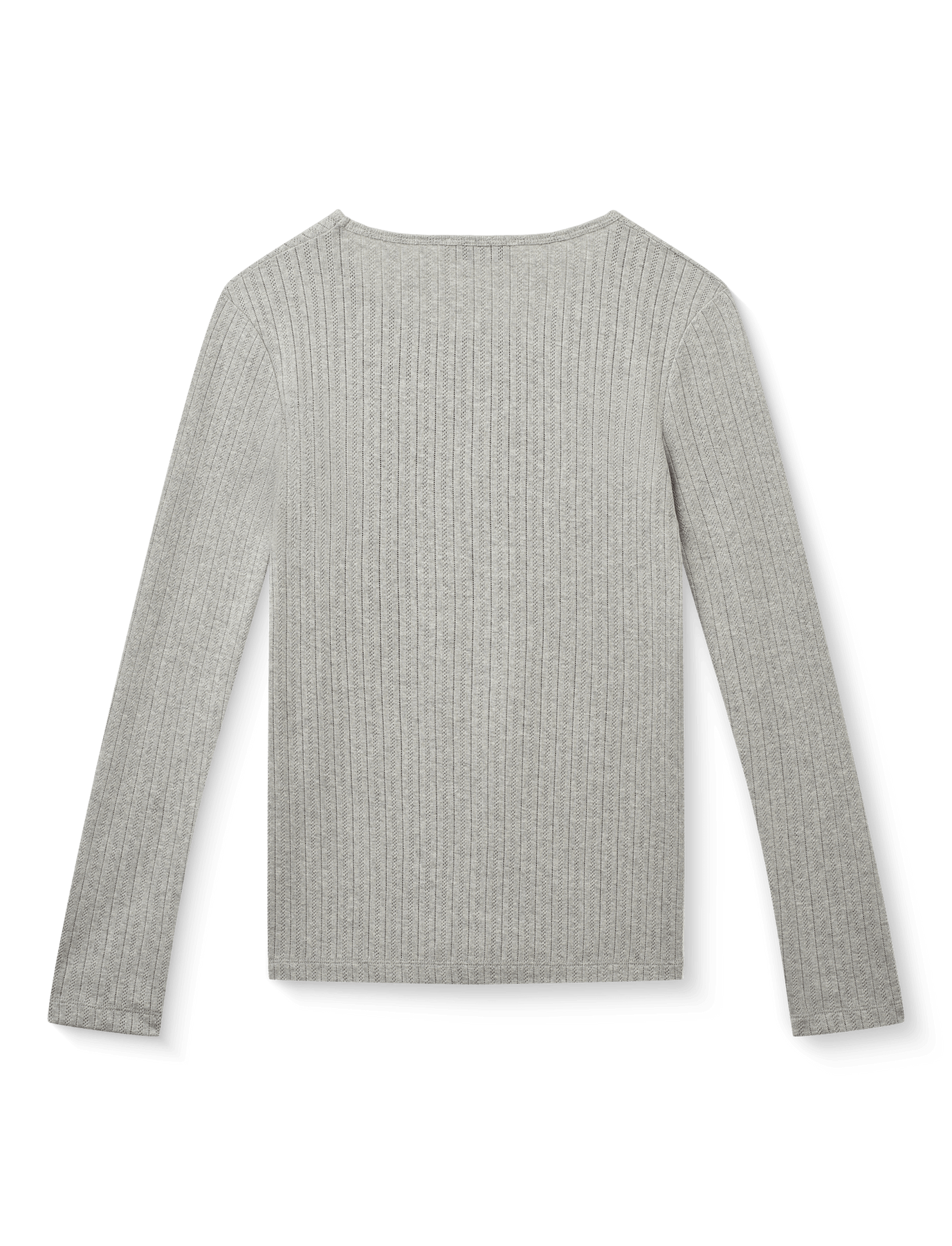 The blouse has a round neck, pointelle pattern and a luxurious finish.