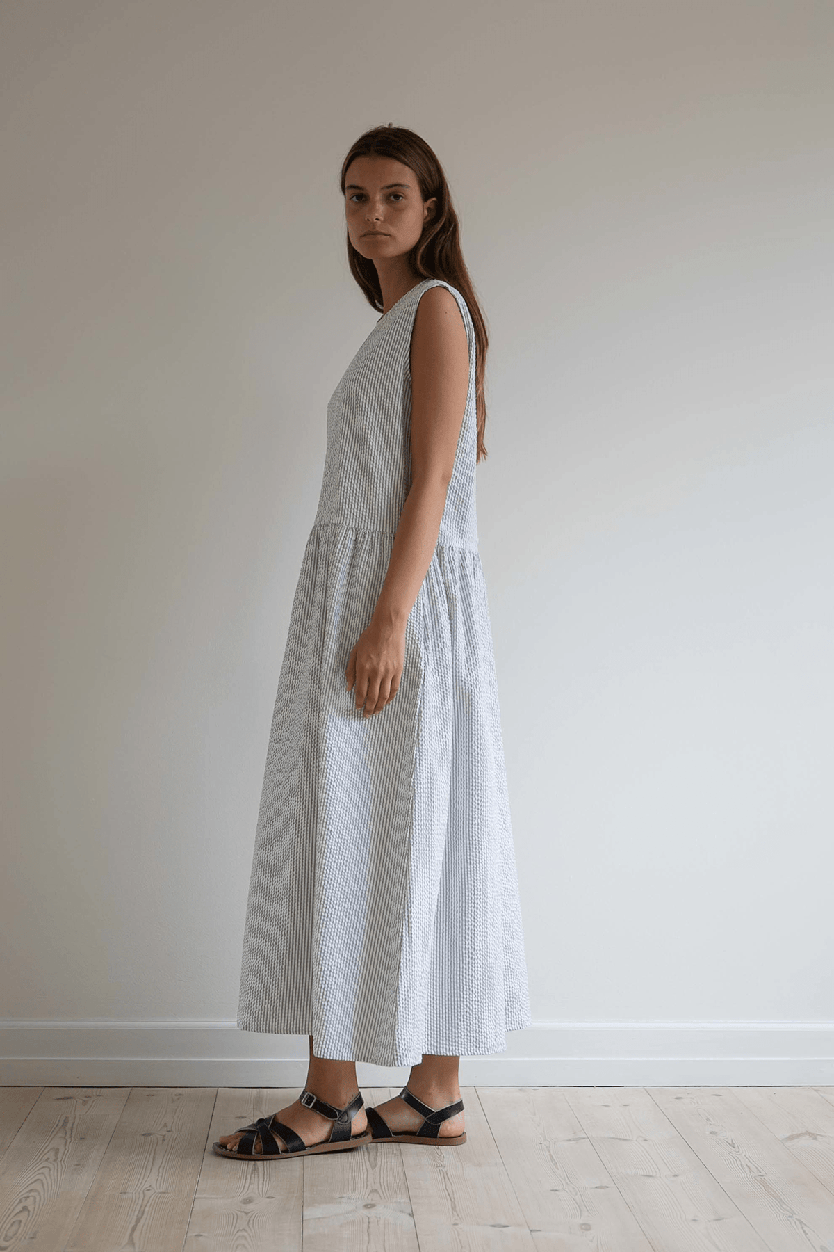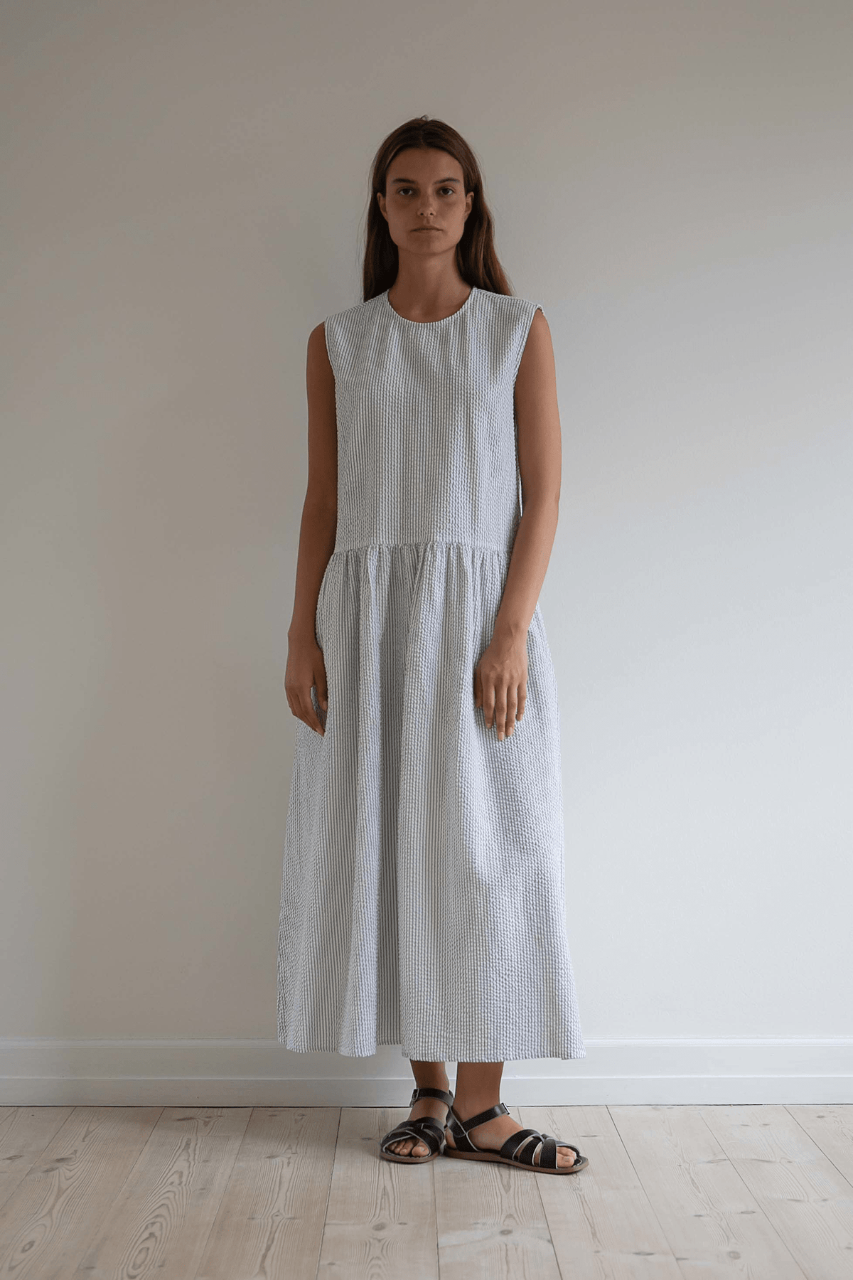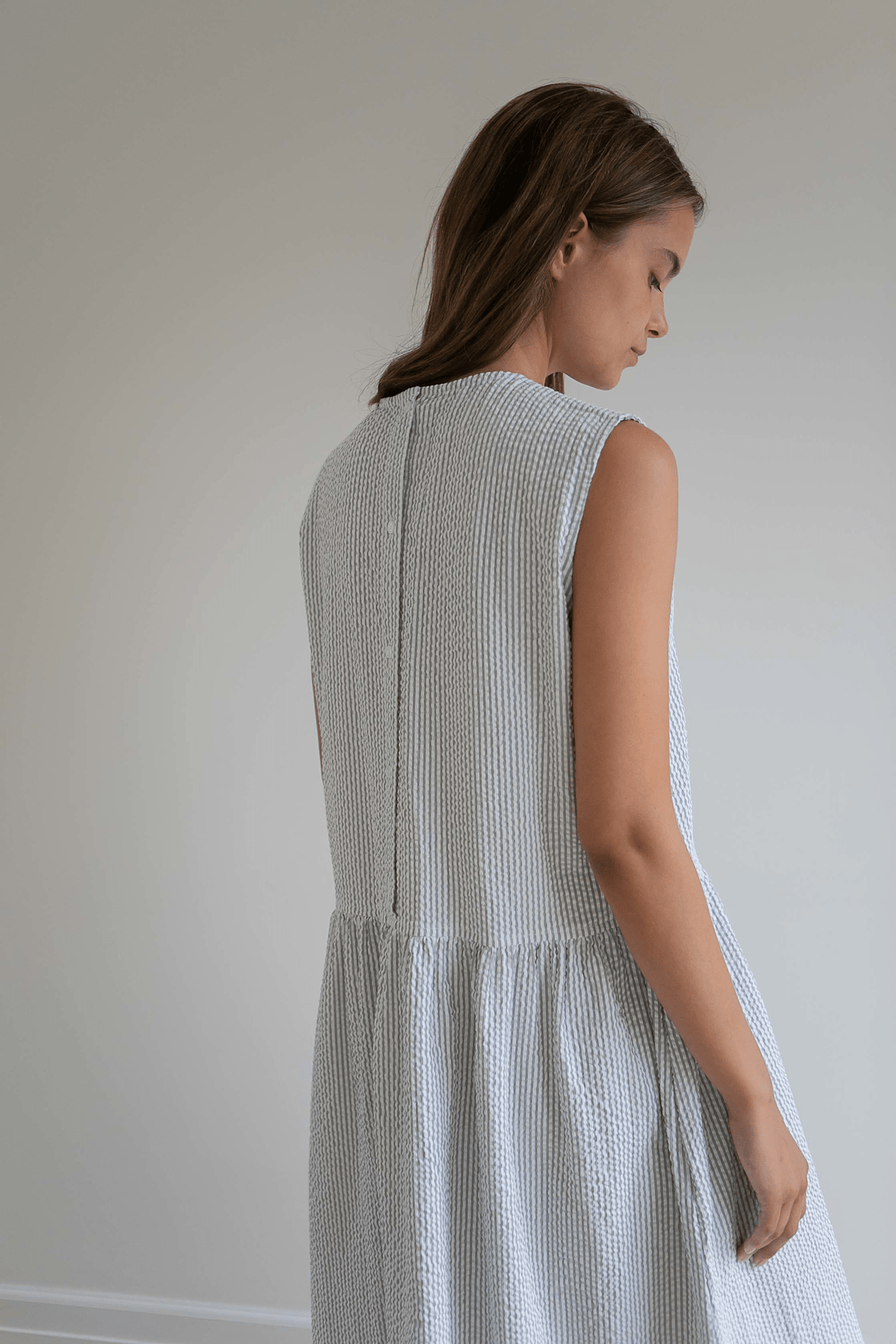 The dress is made in 100% organic cotton seersucker. All interior stitching is French seamed to get a delicate and luxurious finish.