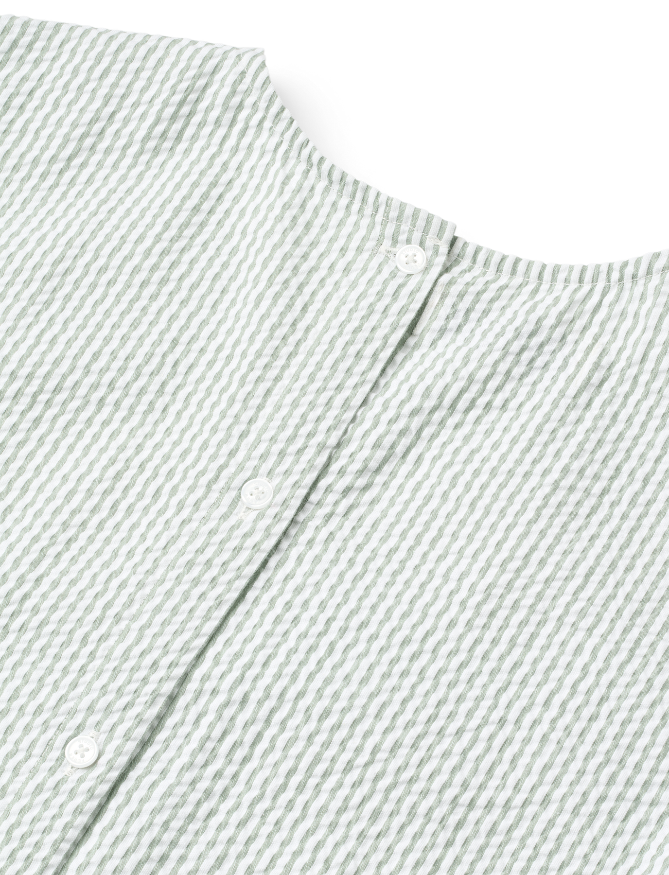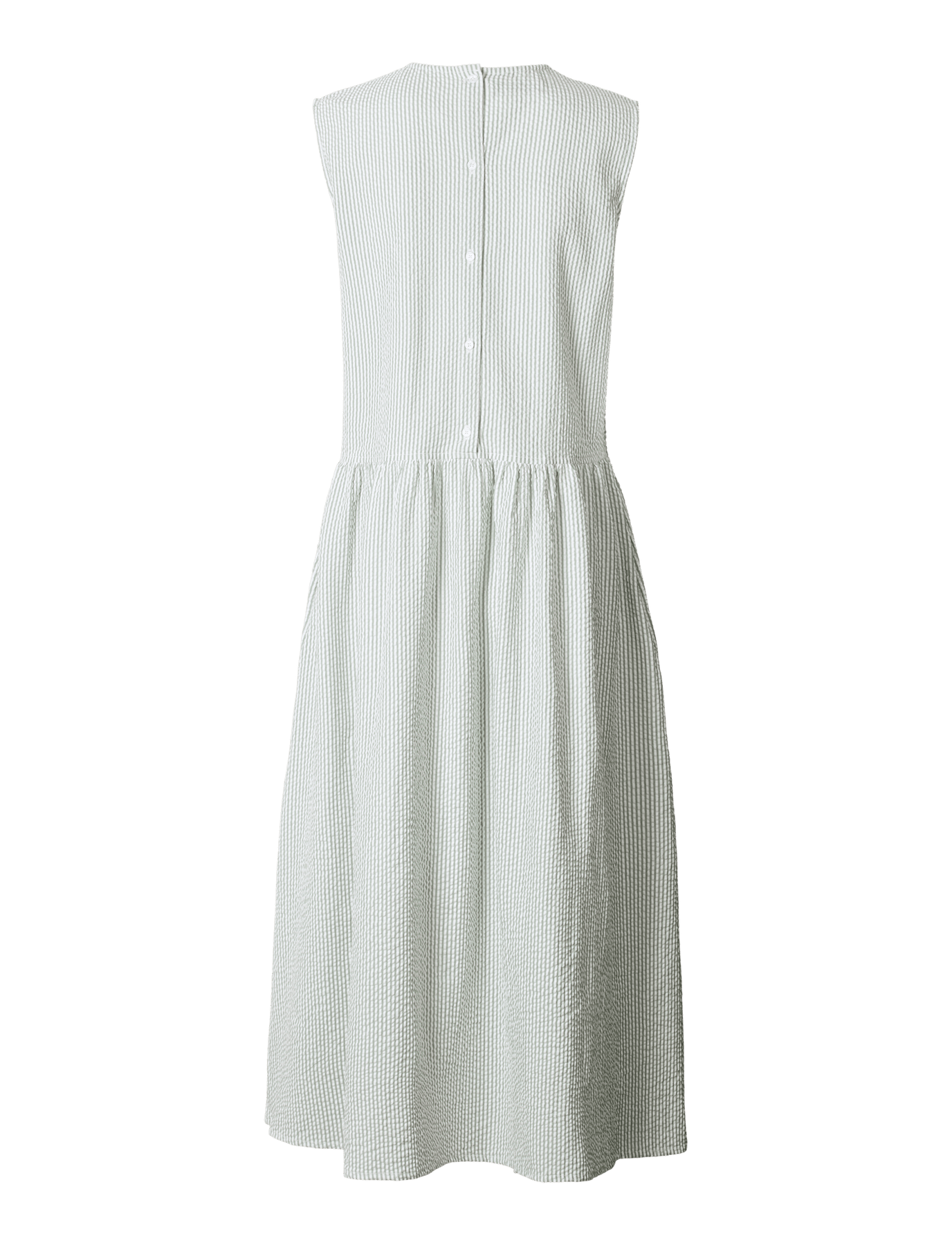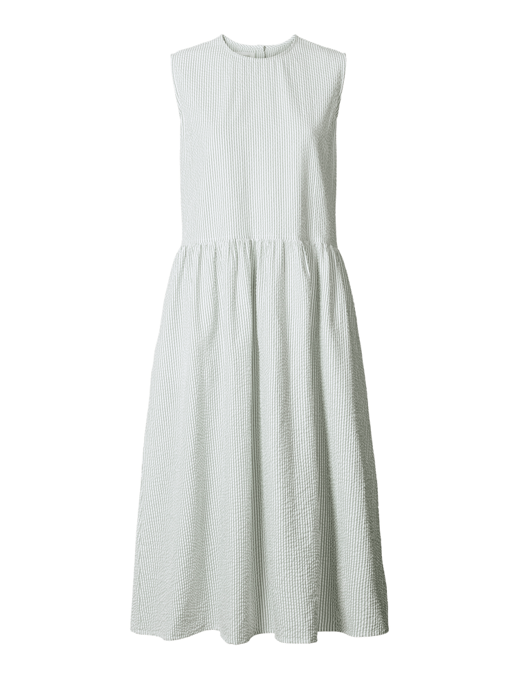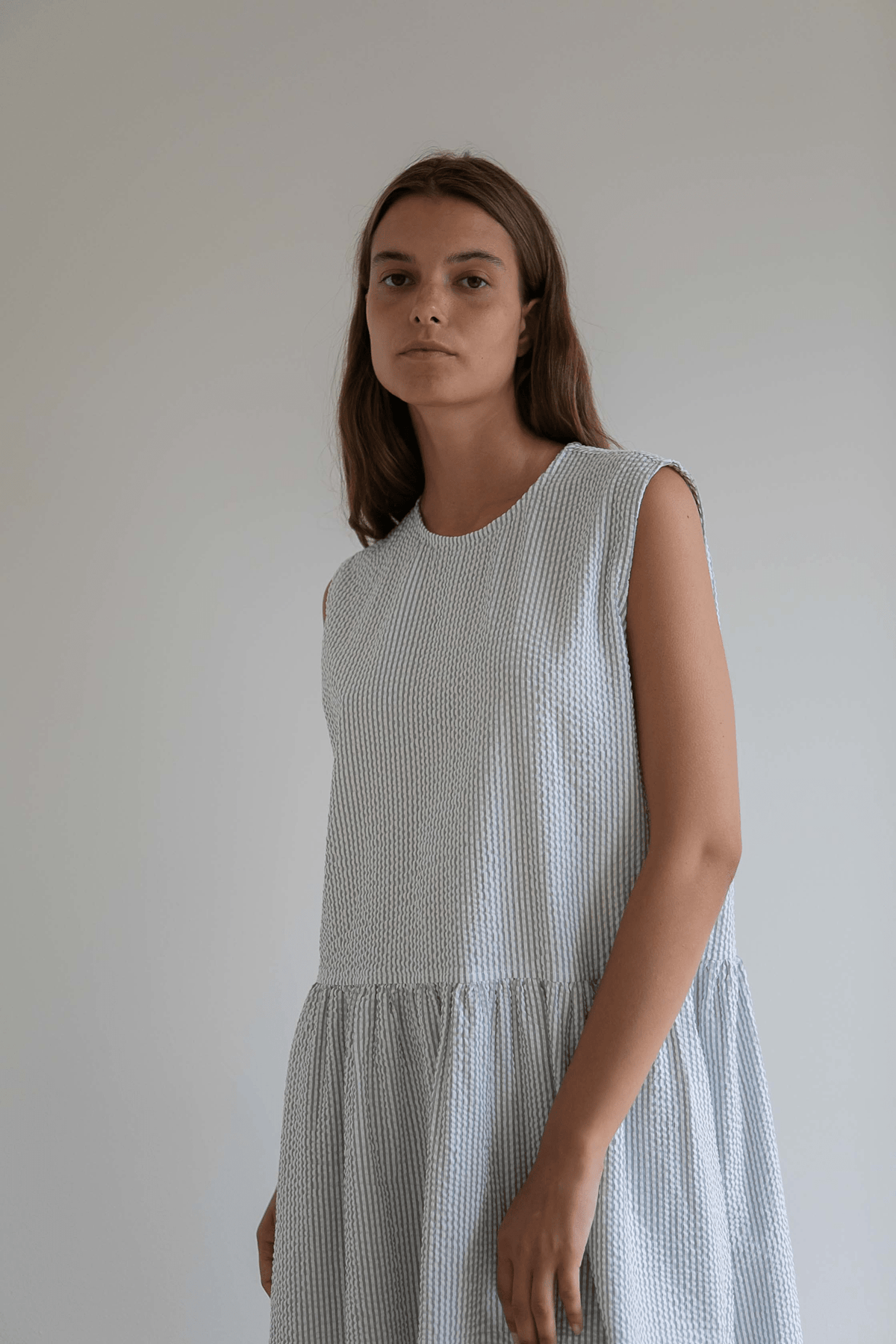 The dress is made in 100% organic cotton seersucker. All interior stitching is French seamed to get a delicate and luxurious finish.