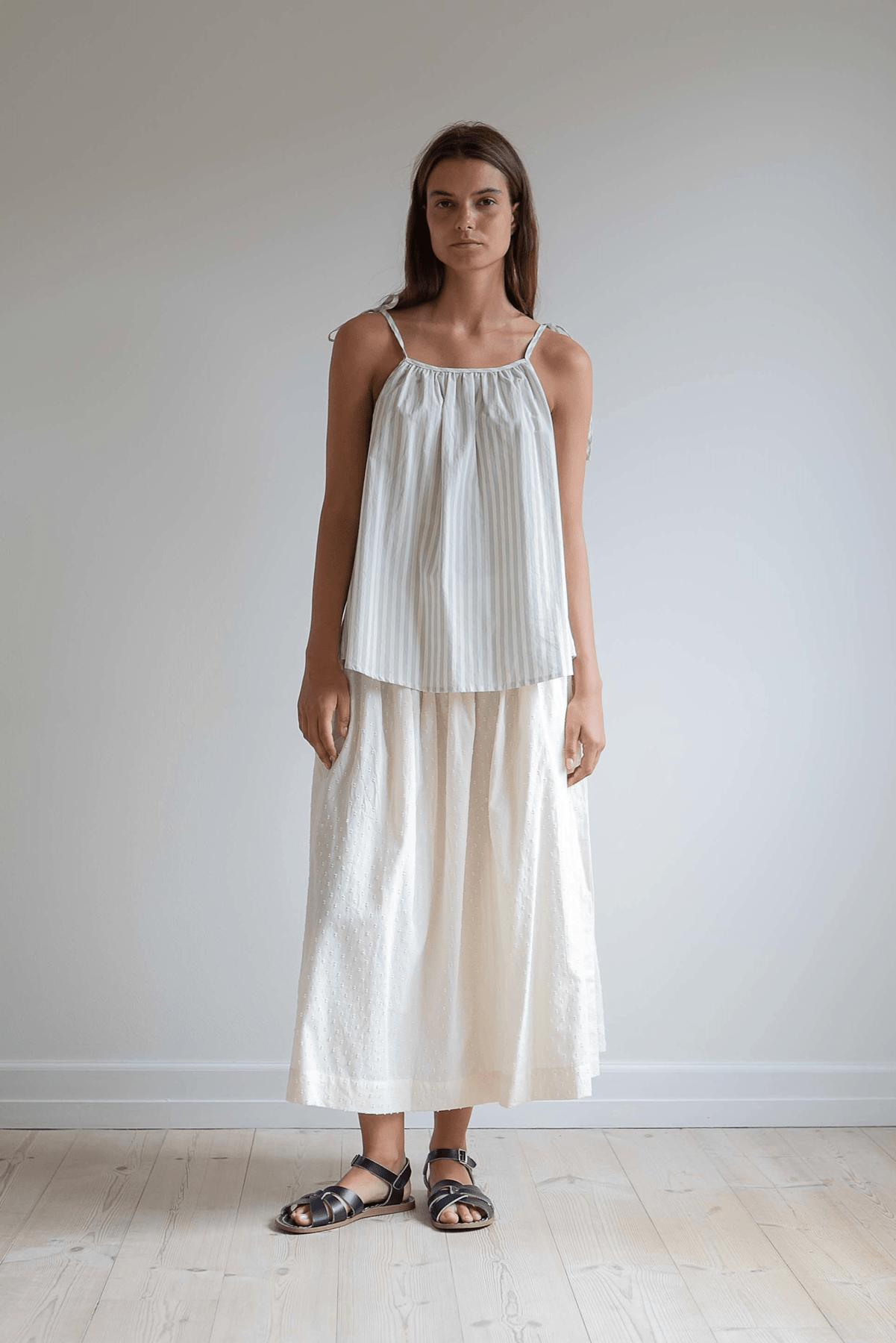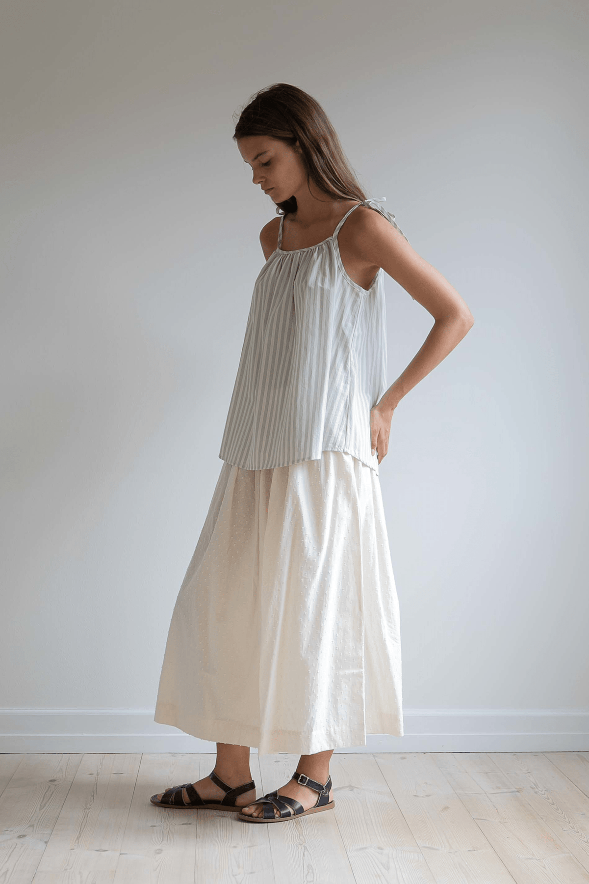 Nice, soft skirt in organic cotton. Olga skirt has an elastic waistband and lots of width, which makes it nice and light and airy on hot summer days.
