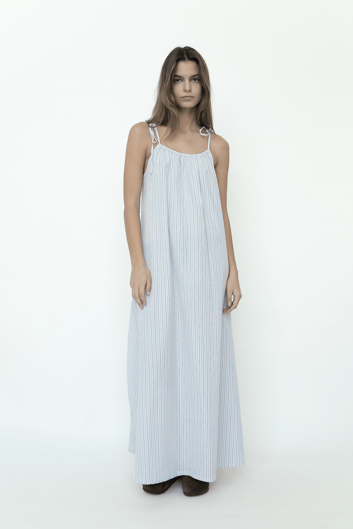 Loose strap dress in 100% organic cotton. The dress i ideal for hot summer days or vacation and is super easy to wear. The straps can be adjusted as you simply tie the straps with a bow as you prefer. All interior stitching is French seamed to get a delicate and luxurious finish. The dress has plenty of width and side pockets.