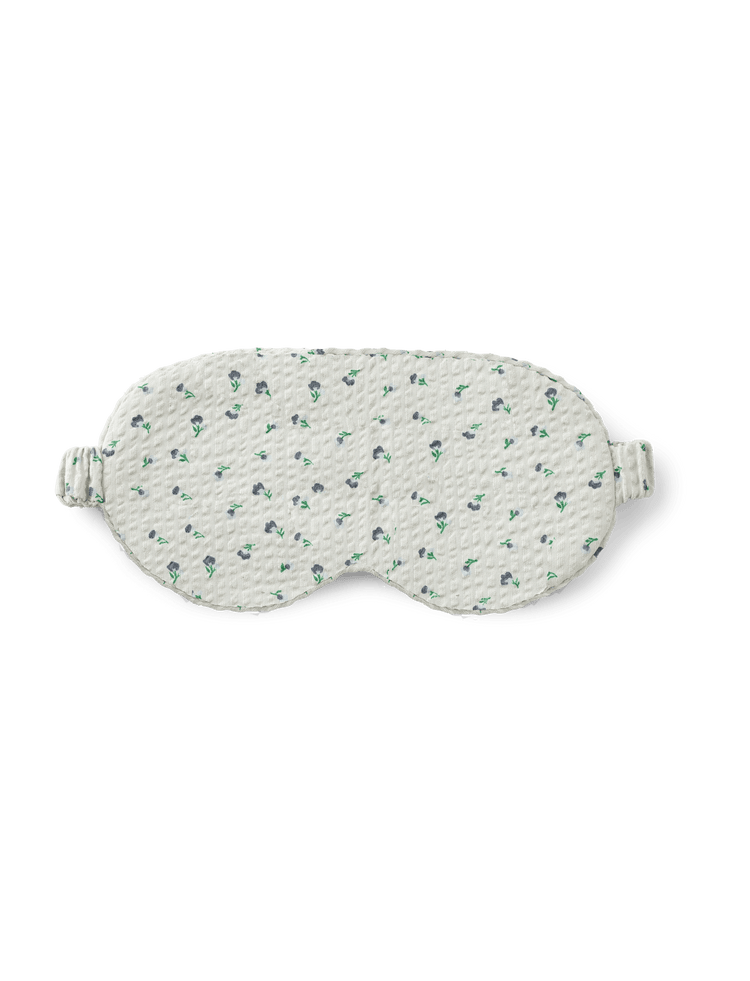 Soft and comfortable sleeping mask in organic cotton seersucker, with recycled polyester filling.