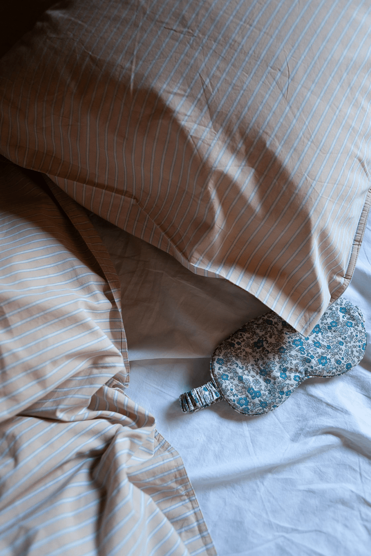 Soft and comfortable sleeping mask in organic cotton with recycled polyester filling.