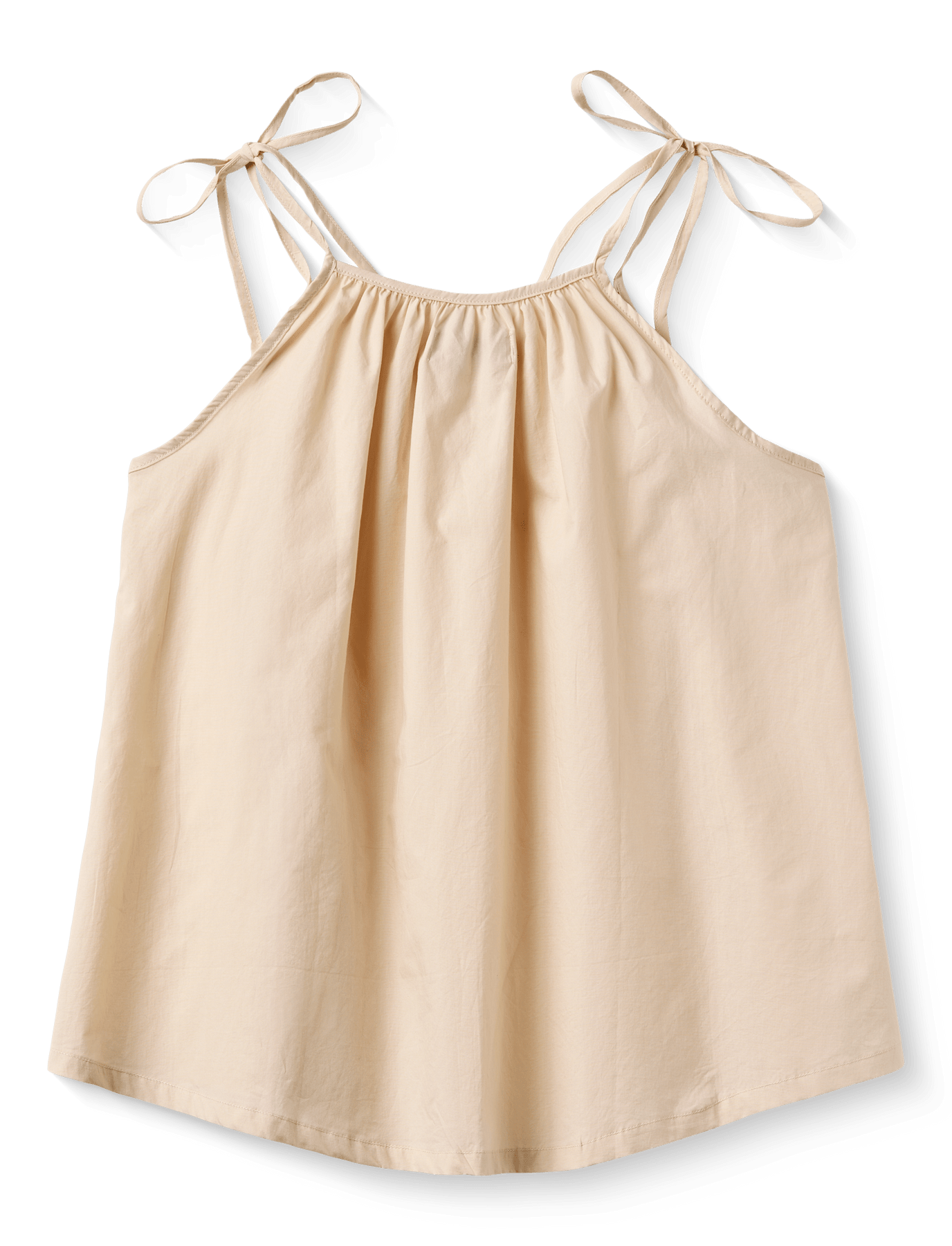 Loose strap top in 100% organic cotton. The top is ideal for hot summer days or vacation and is super easy to wear. The straps can be adjusted as you simply tie the straps with a bow as you prefer. All interior stitching is French seamed to get a delicate and luxurious finish. The top has plenty of width and is really nice to style with a cool pair of shorts.