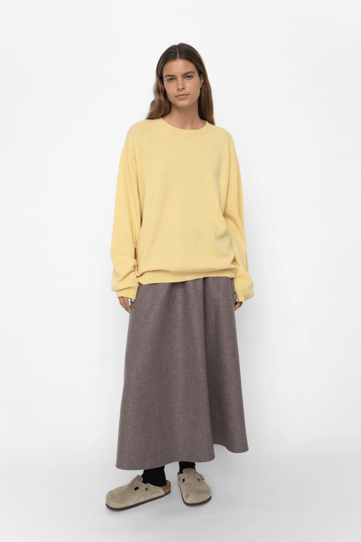 A classic knit in 100% recycled GRS merino wool. This quality peels minimally, if at all, so your beautiful knitwear will stay that way for a long time. It's a timeless knit with a slightly loose fit and a beautiful round neck that can be used across your entire wardrobe. Use it with our Agnes Skirt in wool for a wonderfully cozy and warm set for the cold season. Or together with our Bella Pants in corduroy for a functional everyday outfit.